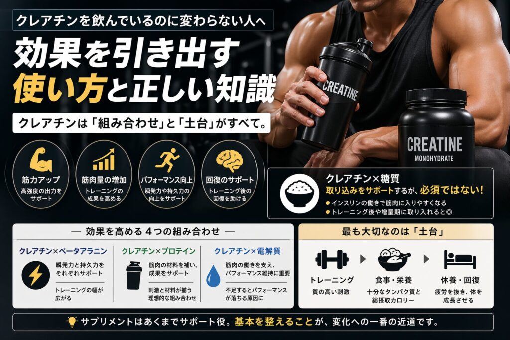 クレアチンは「何と組み合わせるか」で結果が変わります。