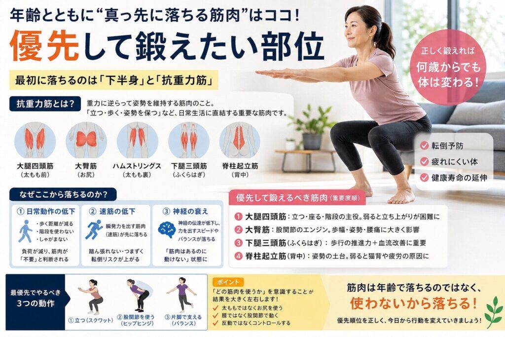 👉 すべての筋肉が均等に衰えるわけではない