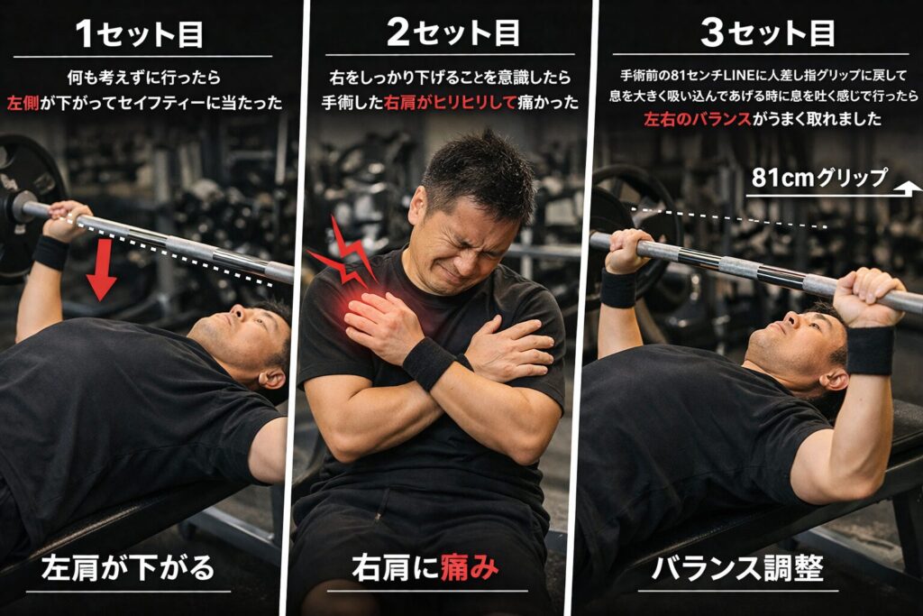 3セット目は、グリップを術前のポジションに戻しました。